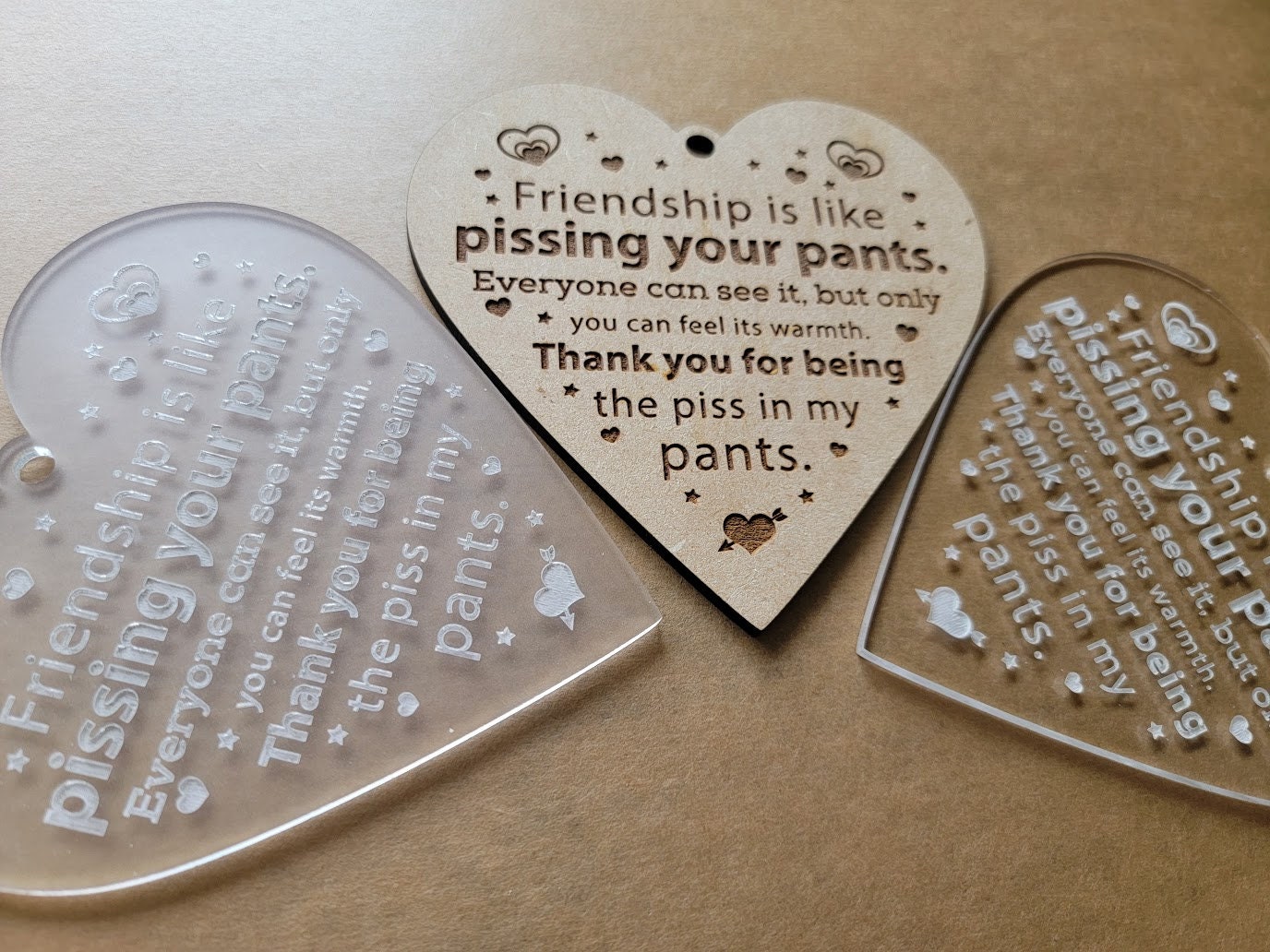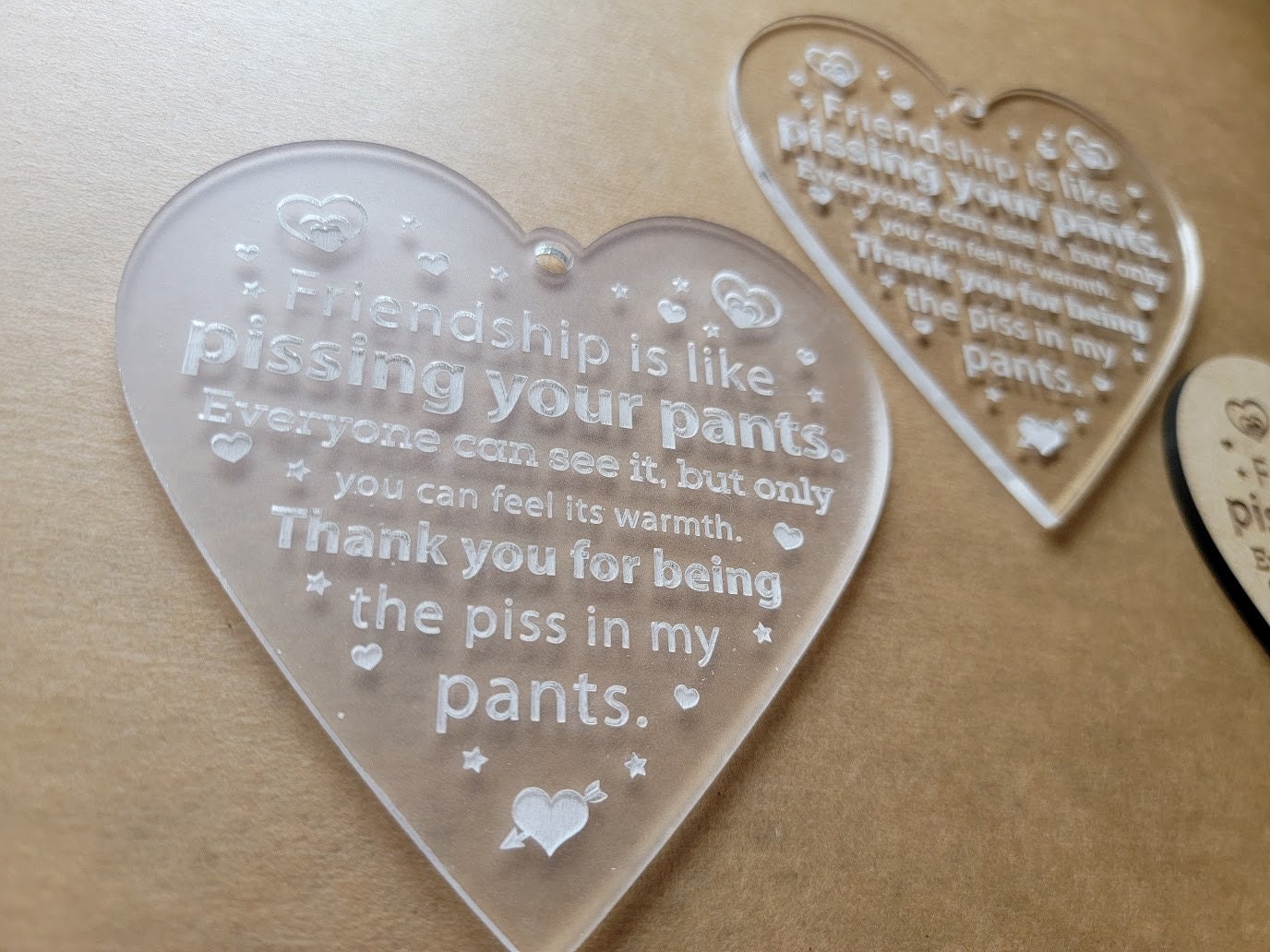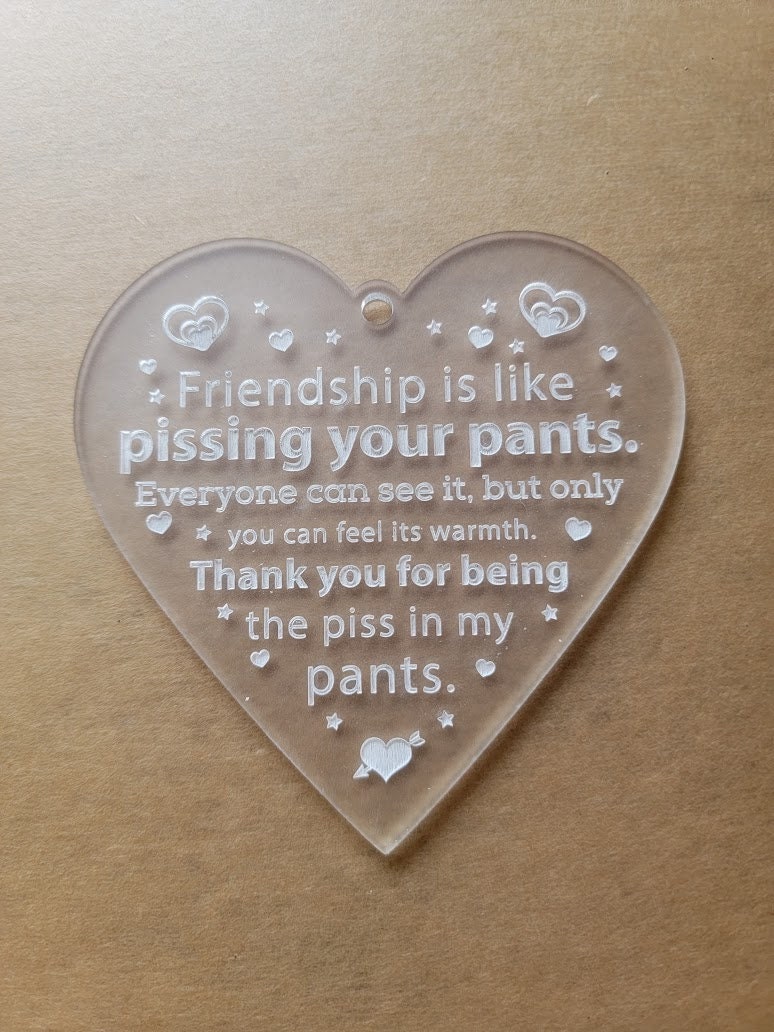 Friendship Pissing Your Pants Christmas Ornament, Funny Valentine Present, Pissing Pants Gag Gift, Christmas Heart Decoration, Holiday Gift