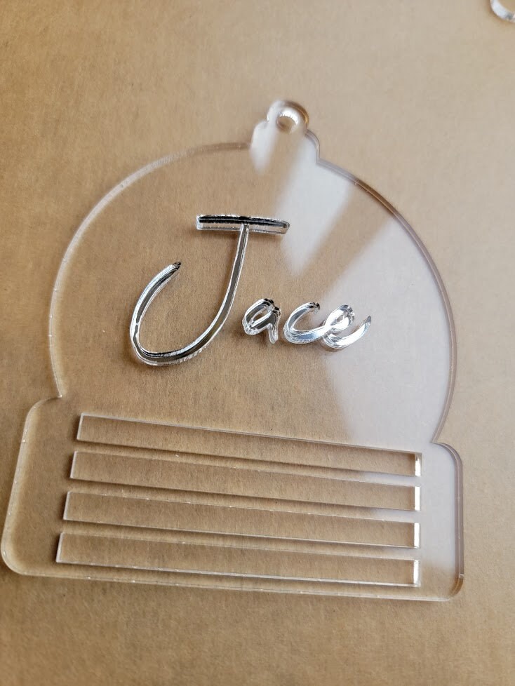 • Name is glued on, please handle with care as a drop or hard bump could cause it to come off (can be re-glued with an acrylic safe option)