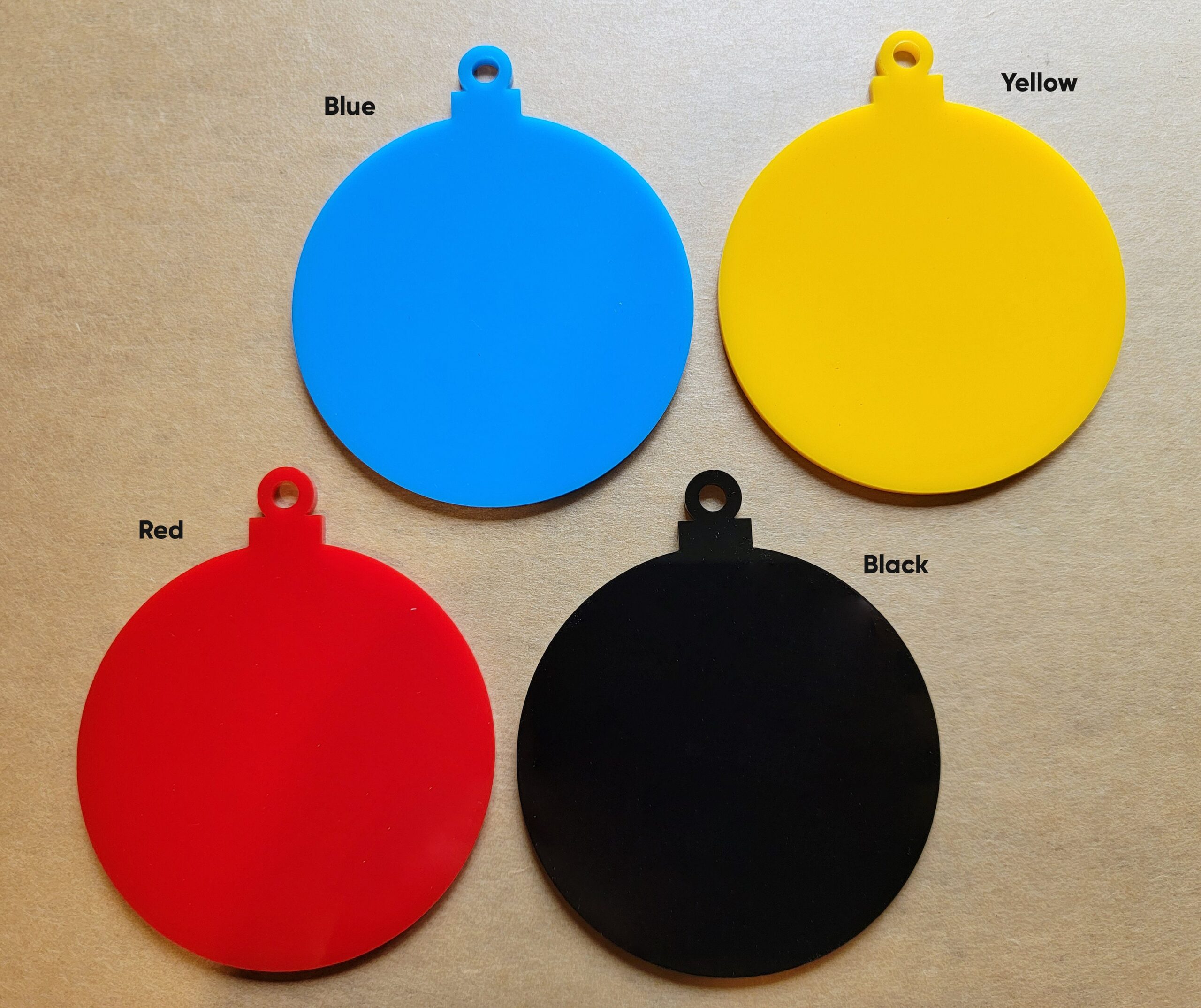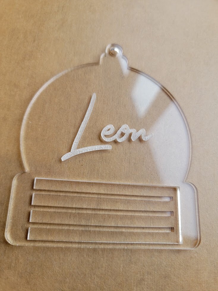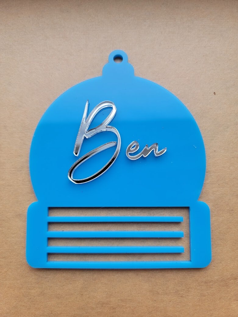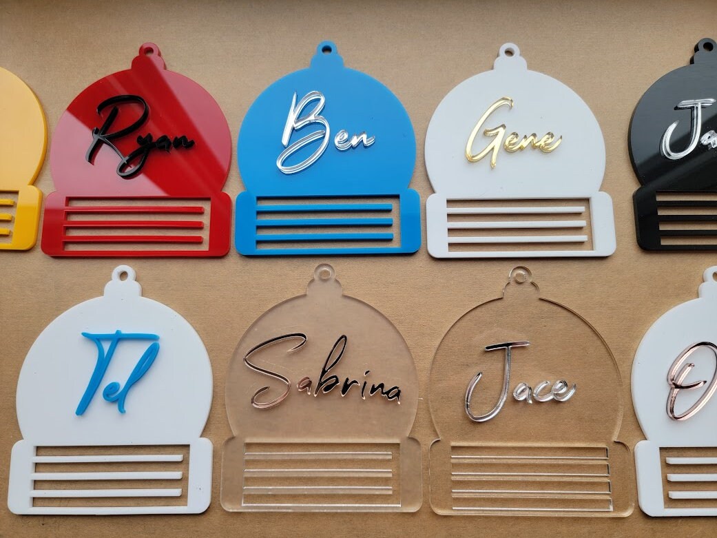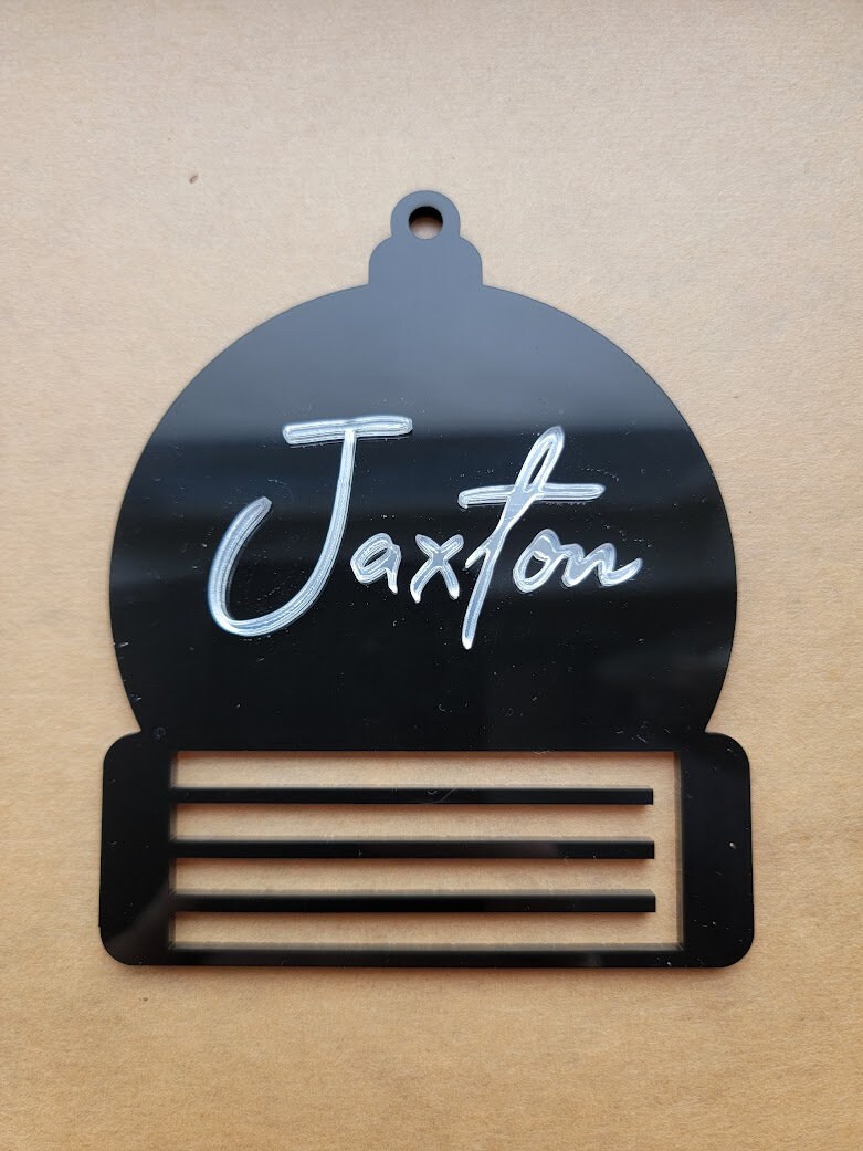 Beautifully laser cut/engraved acrylic Christmas ornament with a choice of colors for both the ornament and the name.