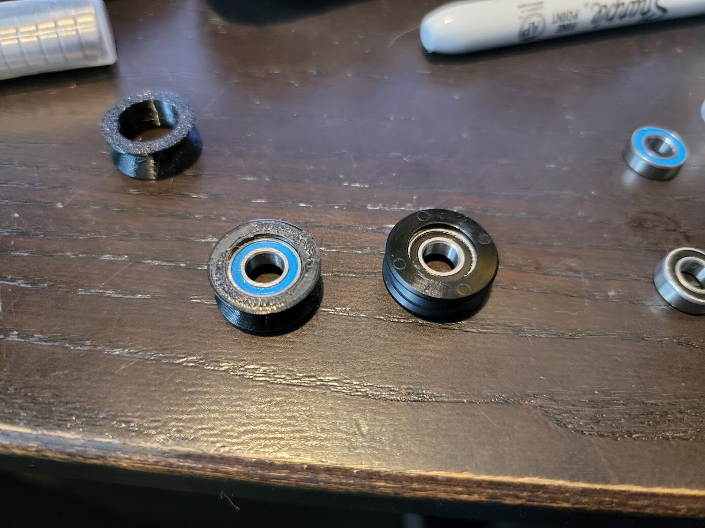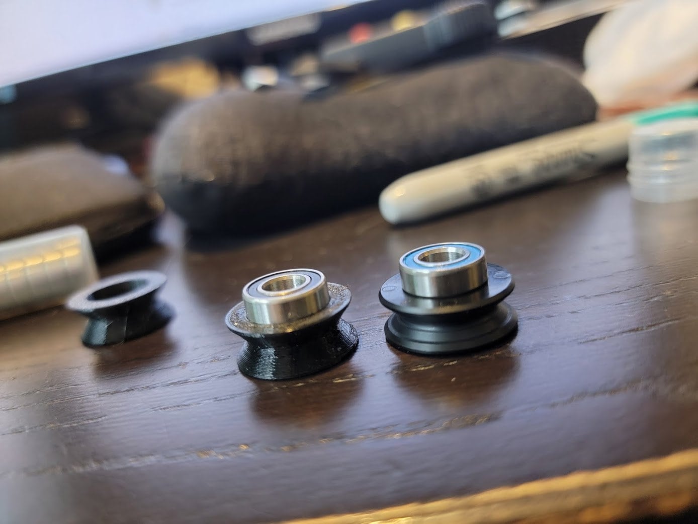 4x – V Wheels (#3 in the pictures), Temporary replacements for the factory Glowforge laser carriage gantry wheels. I personally ran these wheel for 5 months on my Glowforge.