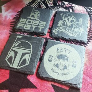 Engraved Boba Fett Gray Slate Coaster, Drink Coasters, Engraved Stone Coasters, Mandalorian Inspired Coasters, Star Coaster Wars