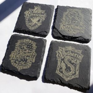 Engraved HP Gray Slate Coaster, Drink Coasters, Engraved Stone Coasters, Harry Potter Inspired Coasters, House Coasters