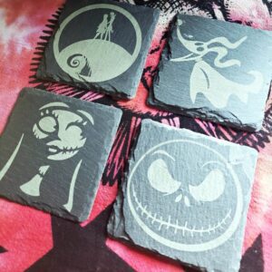 Engraved Nightmare Before Christmas Gray Slate Coaster, Engraved Stone Drink Coasters, NBC Inspired Coasters, Jack Skellington, Sally, Zero