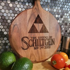 Personalized "The Legend of" Round Acacia Cutting Board, 10 inch Wood Geeky Kitchen Decoration, Custom Wedding Video Game Present, Nerd Gift